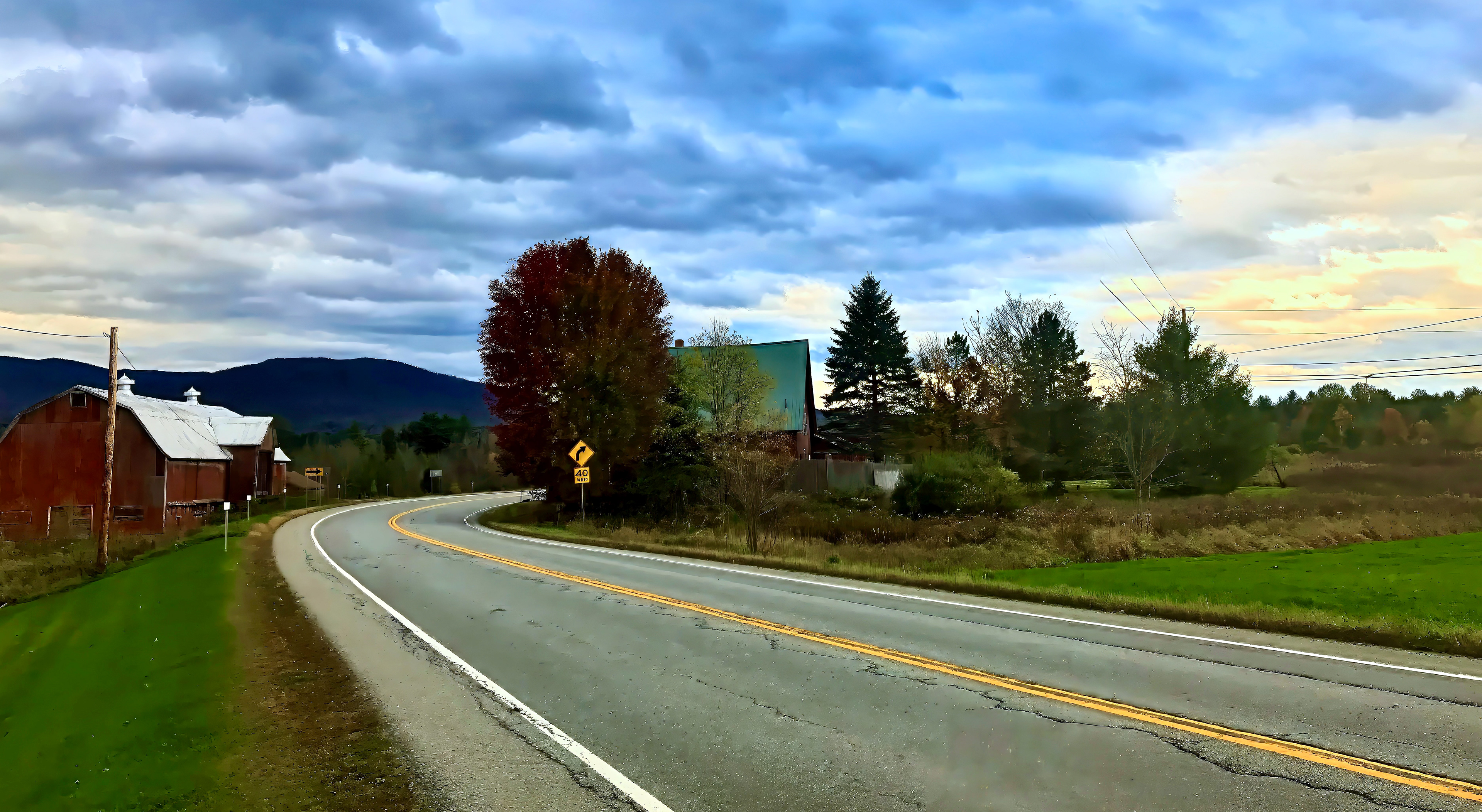 Winding through the Green Mountains of Vermont, where the road drops and the horizon rises.