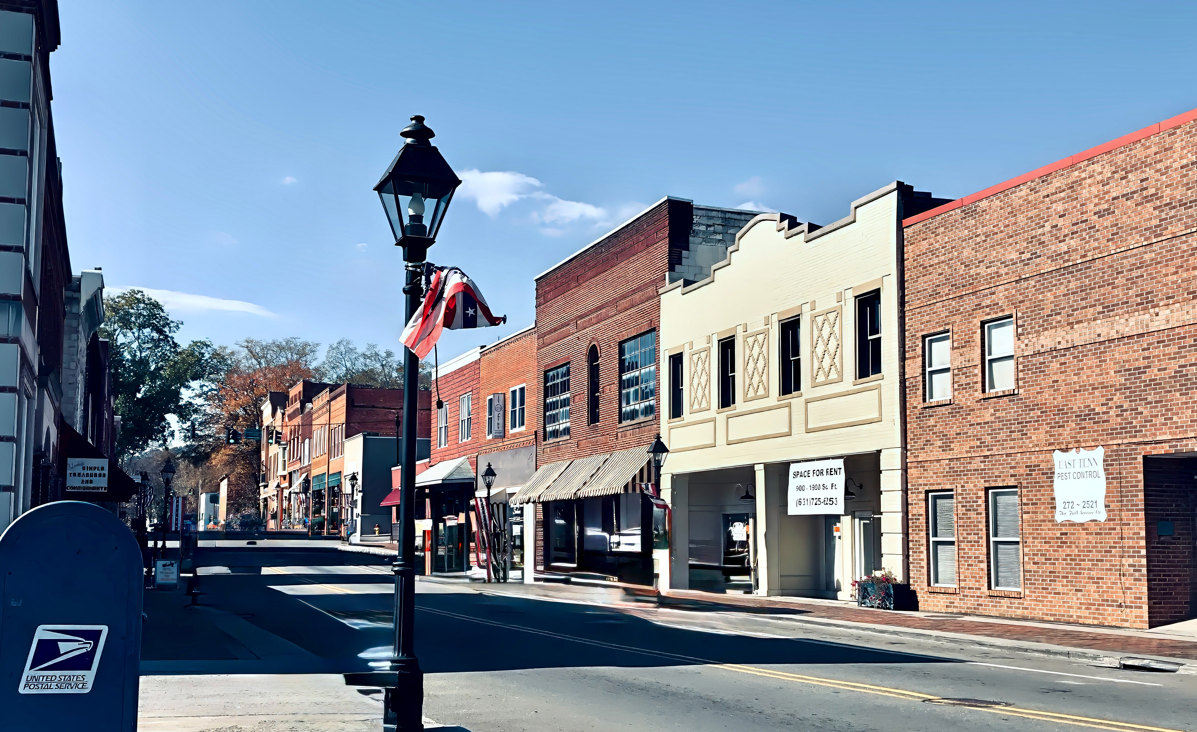 Main Street Stillness: Rogersville, Tennessee — where the shadows fall long on history and the storefronts wait for the next chapter.