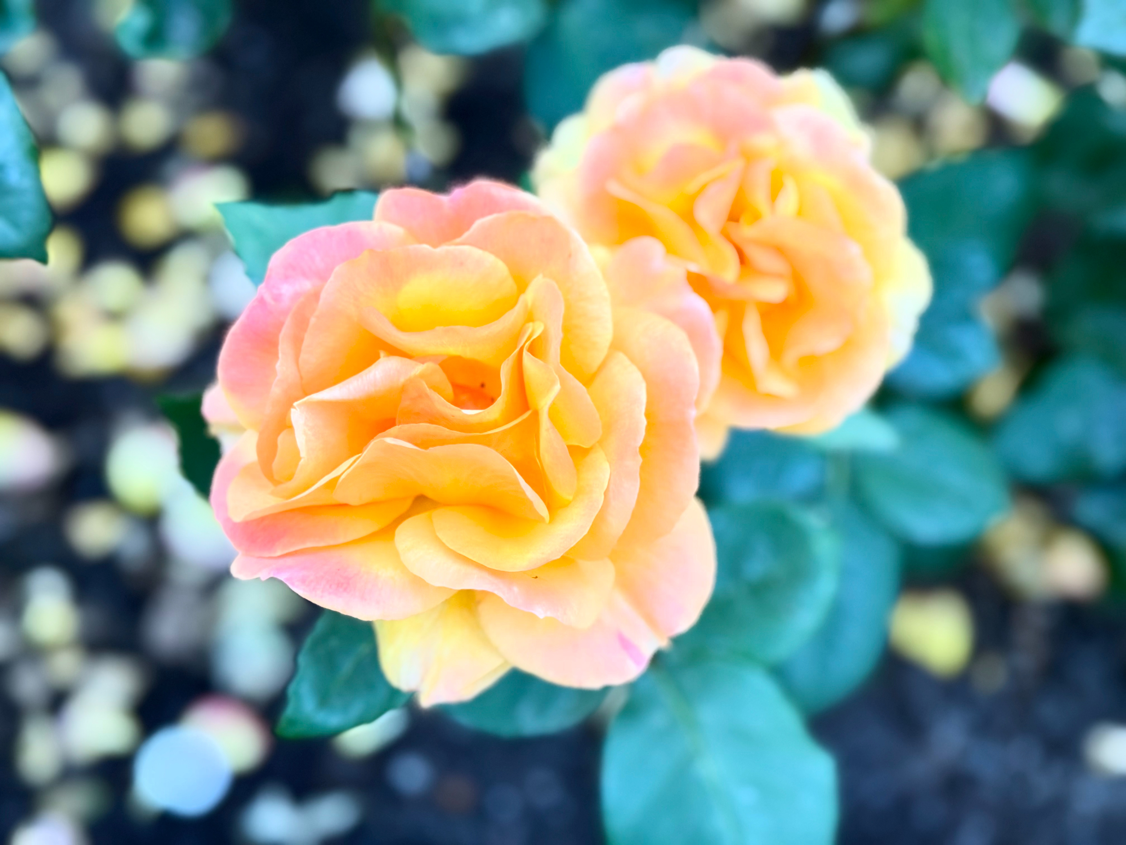 A delicate pink and yellow rose blooming beautifully at Washington Park in Portland, Oregon.