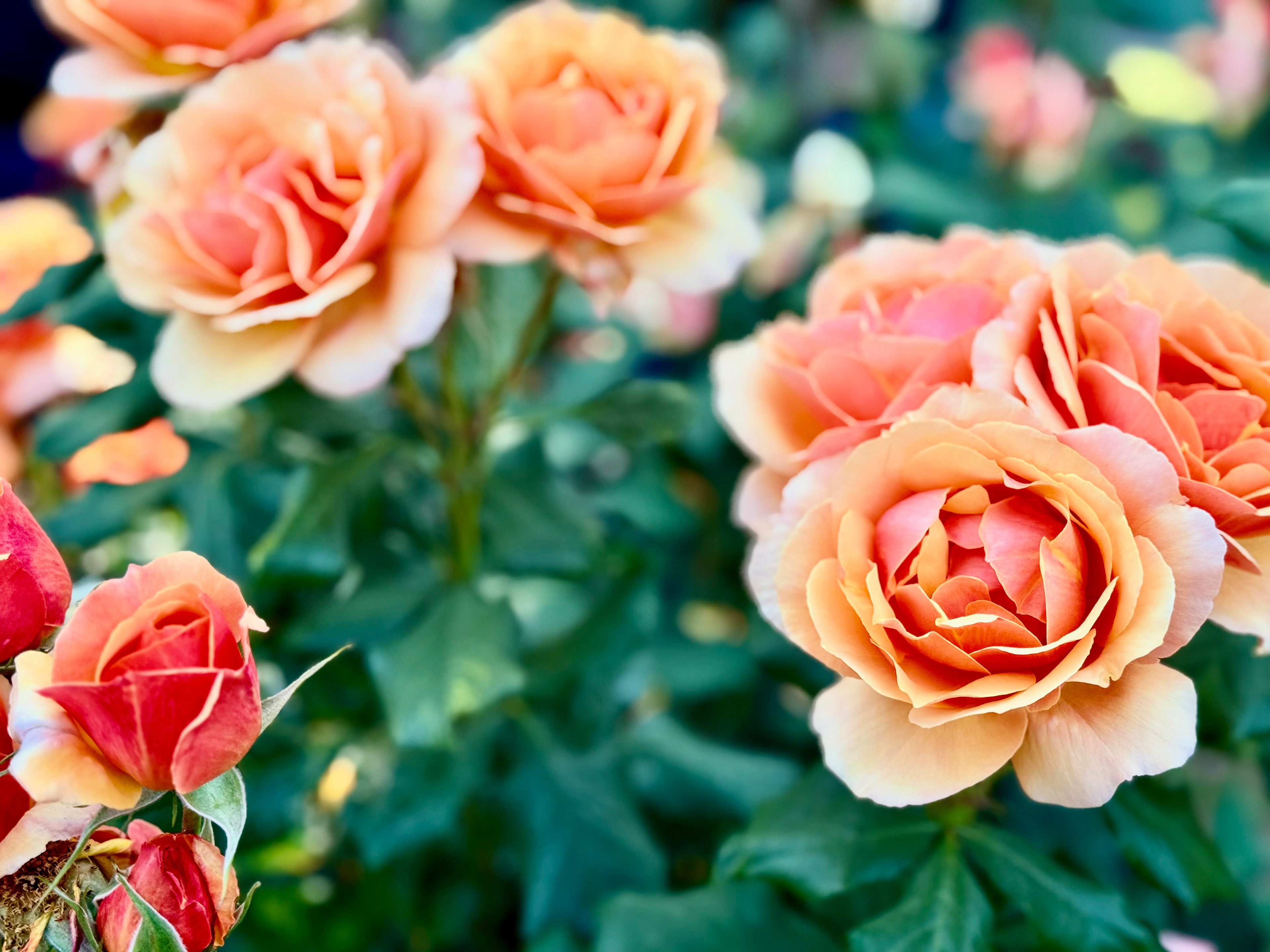 Cluster of vibrant orange roses blooming beautifully at Washington Park in Portland, Oregon.